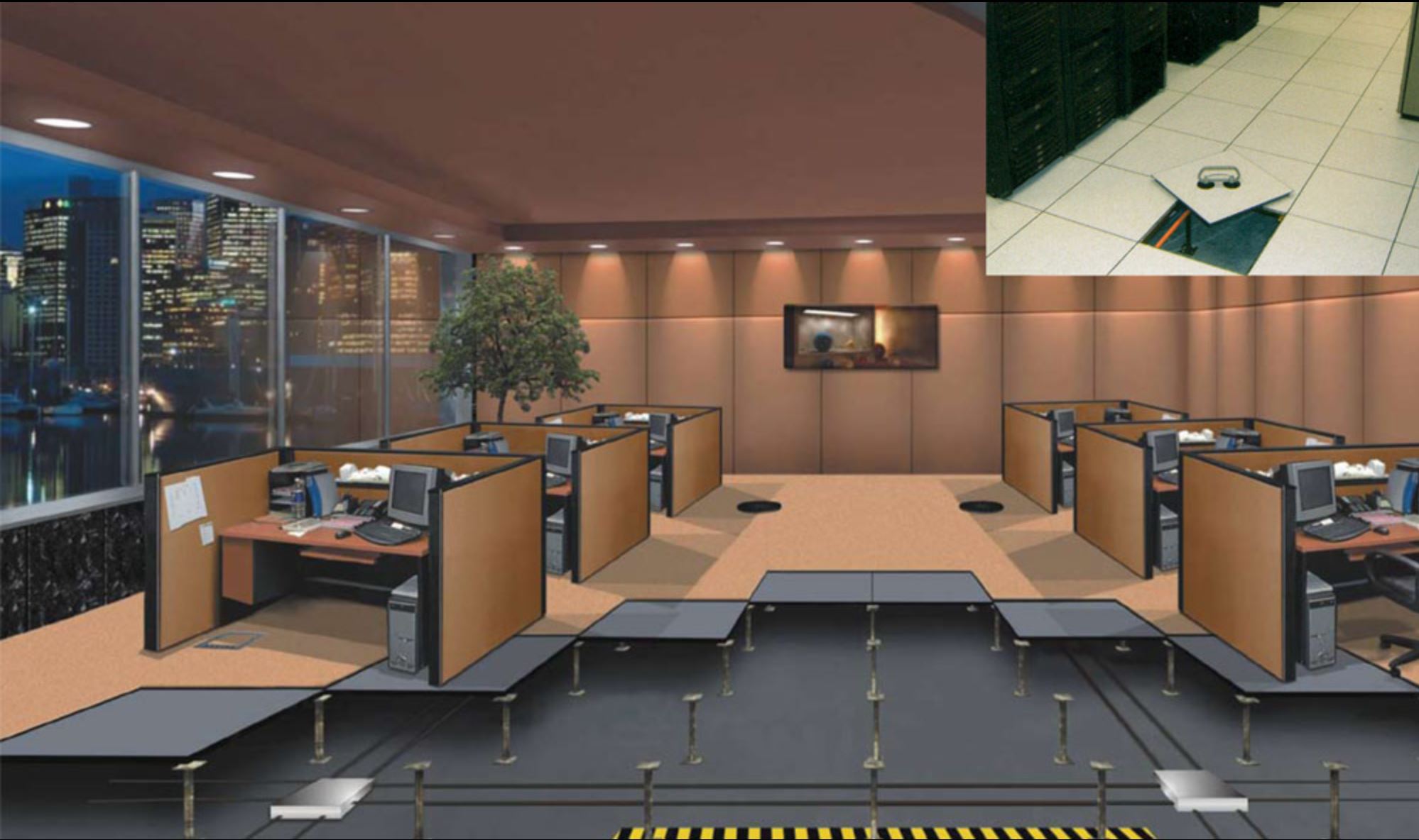 Our expert team knows how to complete your New Raised Access Floor Installation. Start to finish! We will provide drawings, complete materials count including: panels, understructure, ramp, rails, steps and accessories; and professional installation. Our job isn’t finished until you are 100% satisfied.