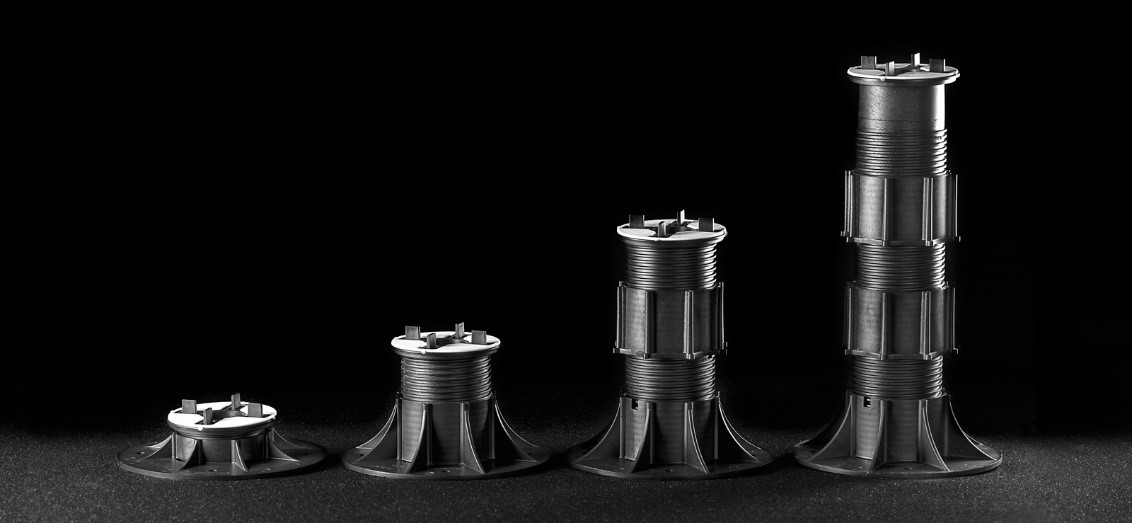 We are specialized in providing the industry with pre-manufactured elevated decking components for commercial and residential applications. We supply pedestal/paver components for installations over unlevel or sloped surfaces that require drainage and a level surface with no visible drains. Our range of pedestals can be used to install porcelain paving on patios, terraces and balconies. The strong plastic pedestals have self-levelling heads and can be easily adjusted using the Pedestal Adjustment Tool to level the tiles once they are installed. There are a range of heights available and even extension pieces to create the exact height needed. For a mess free installation with open joints and built-in drainage, use the pedestals to create a raised floor.