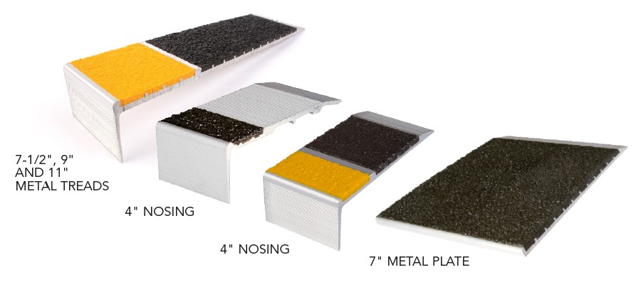 - Safety abrasive strips standard on some product lines. Ribbed rubber inserts and custom strips also can be added for extra traction or to aid the visually impaired. Available with self-illuminating photo-luminescent abrasive glow strips for added safety in darkened conditions.